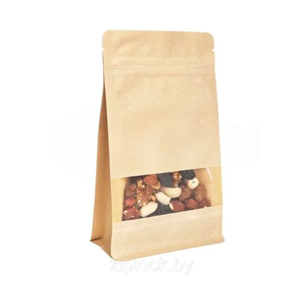 Пакет восьмишовный 135+65*225, окно 40мм, с замком zip-lock 50штук